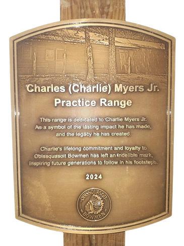 This 10 thru 60 yard practice/sight-in range with covered shooting area was dedicated to Charlie Myers Jr. on Sunday, March 17, 2024 as a symbol of the lasting impact he has made, and the legacy he has created at Obissquasoit Bowmen.